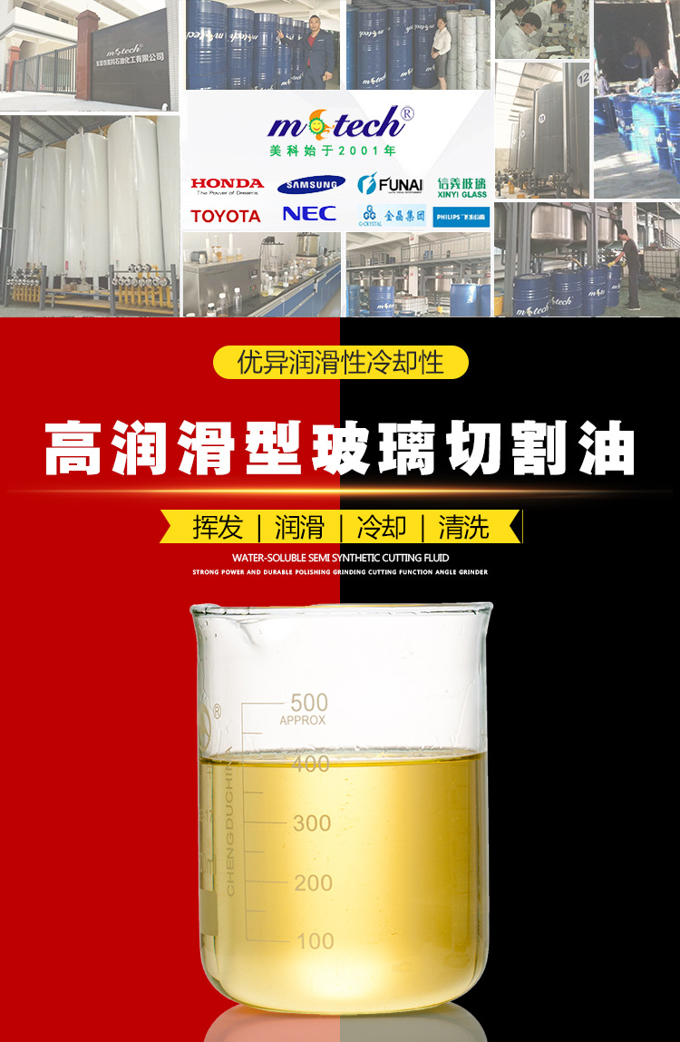 东莞美科MD204玻璃切割油,特殊配方,具有优异的润滑性,冷却性,适用于所有玻璃切割、润滑、冷却用油。【美科玻璃切割油全国招商火热进行中,诚邀您的加盟!全国免费咨询热线400-8898-938】